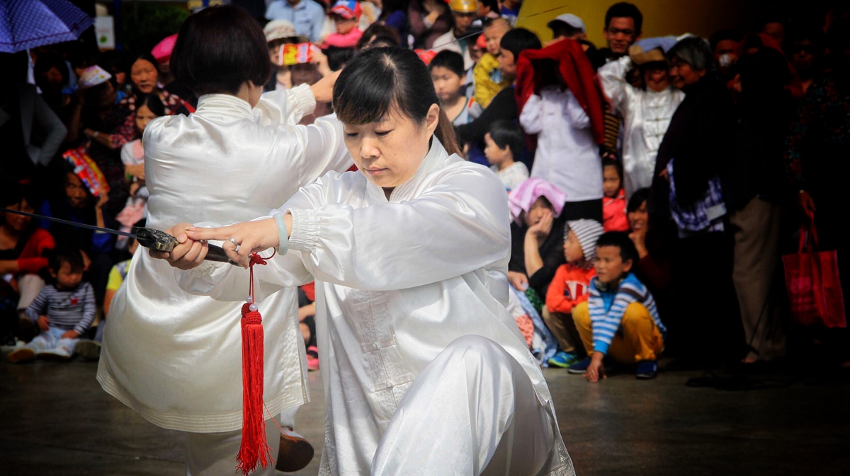 图三:农场职工参加县体育局举办的太极拳展演,端详专注的神情里包含着幸福感和获得感。