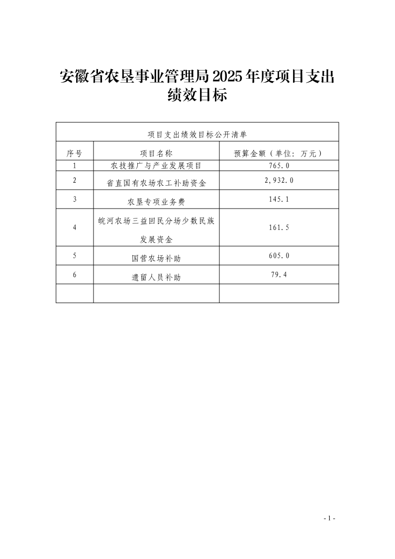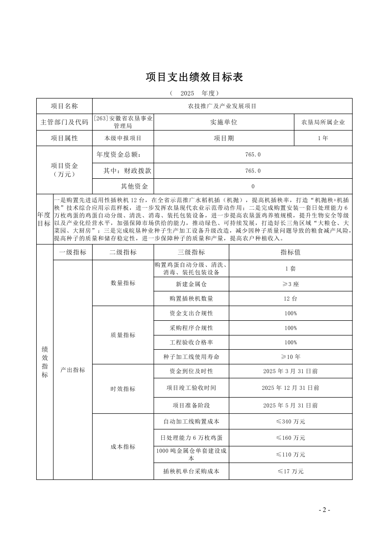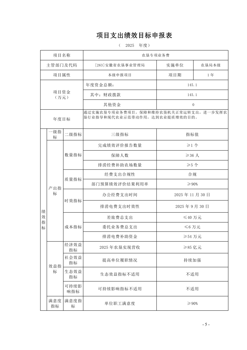 安徽省农垦事业管理局2025年度项目支出绩效目标.pdf