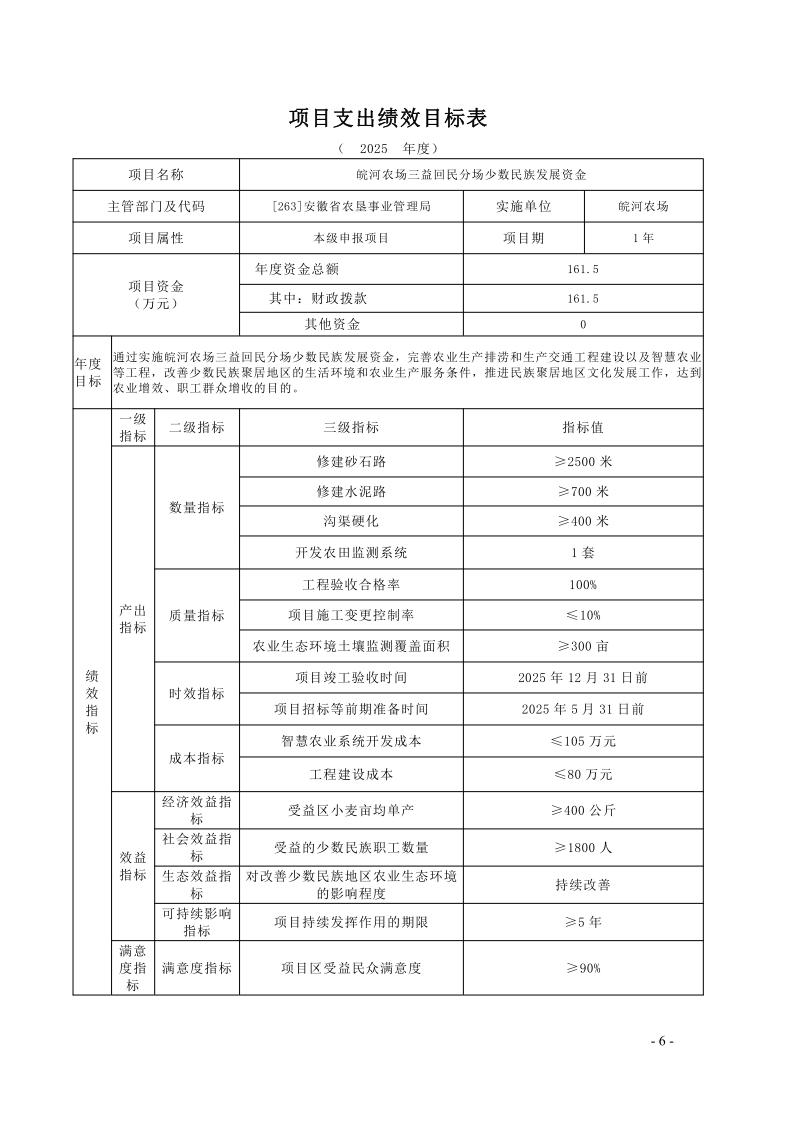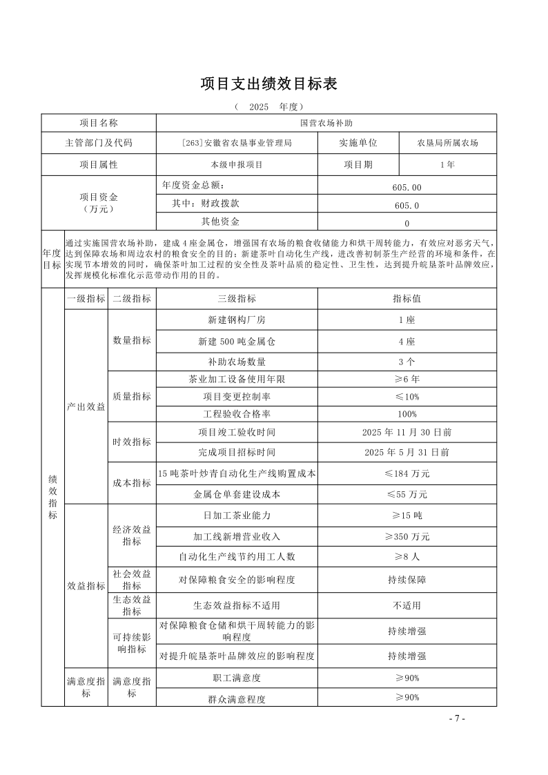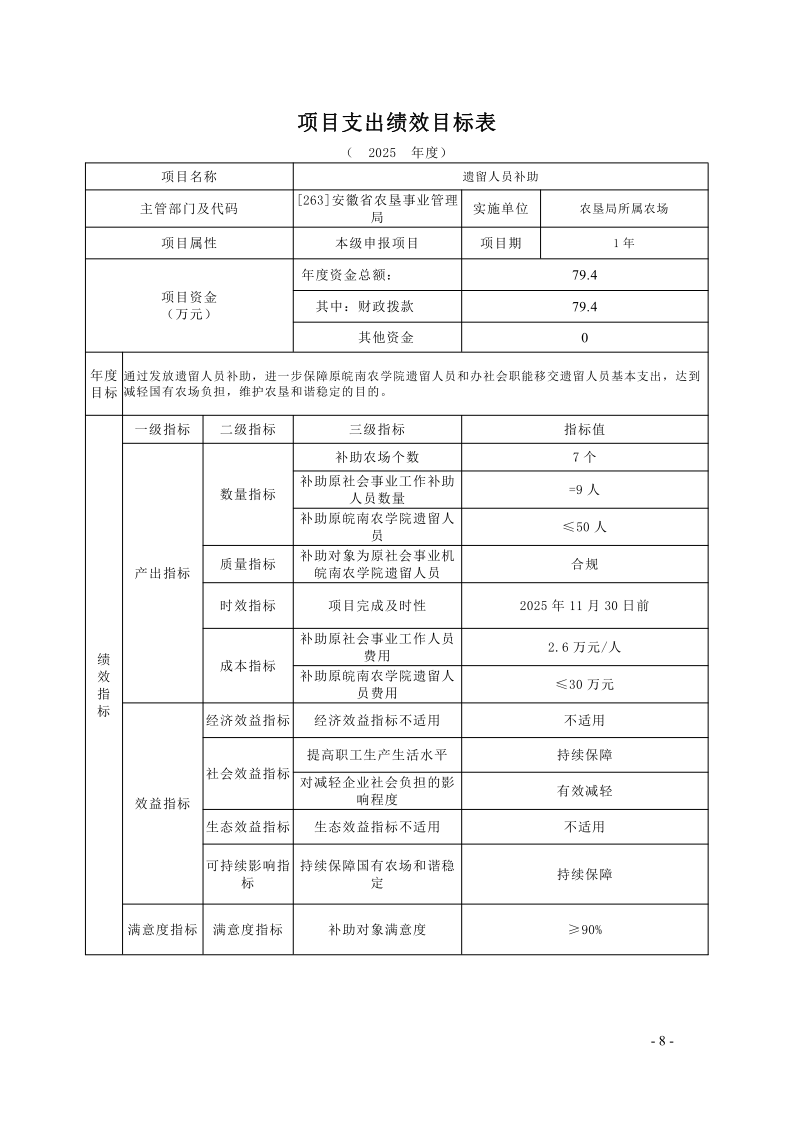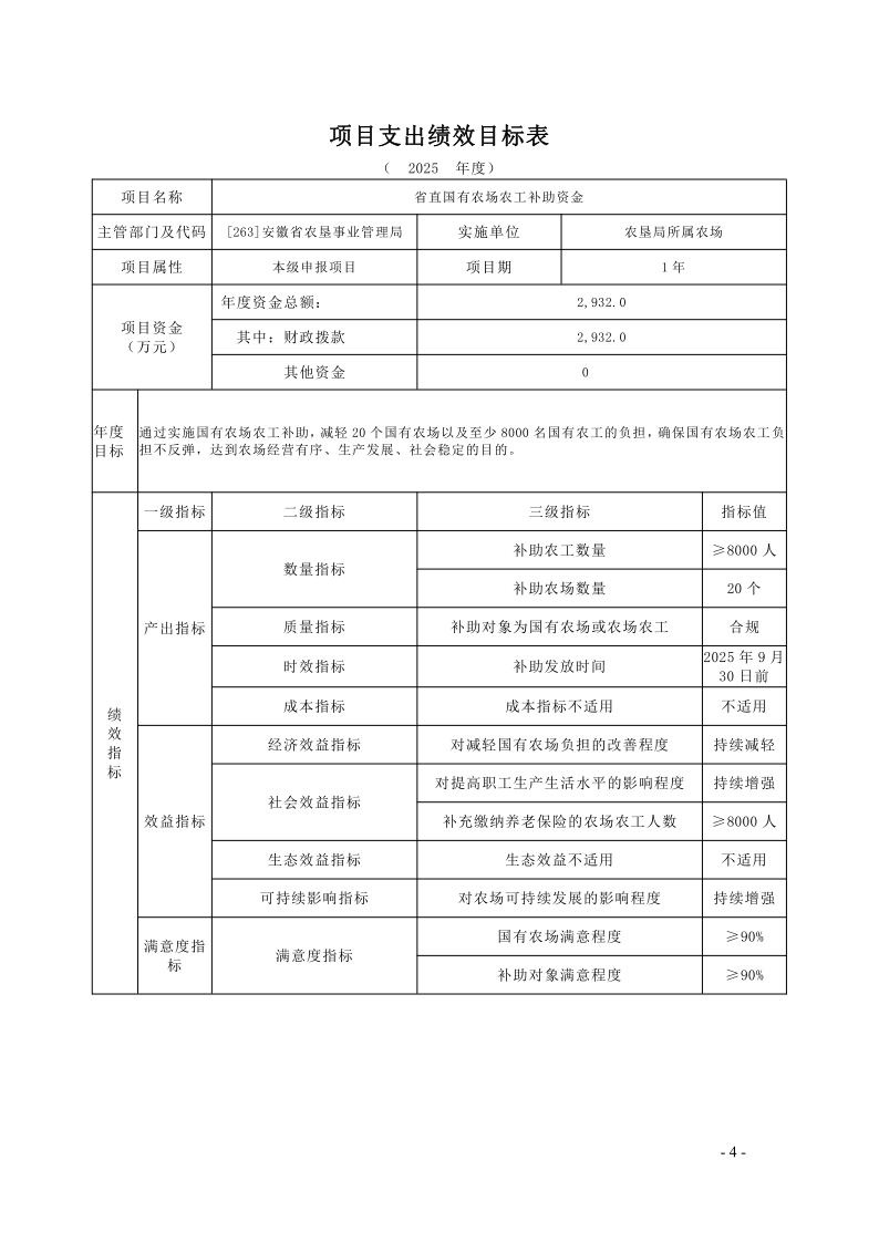安徽省农垦事业管理局2025年度项目支出绩效目标.pdf