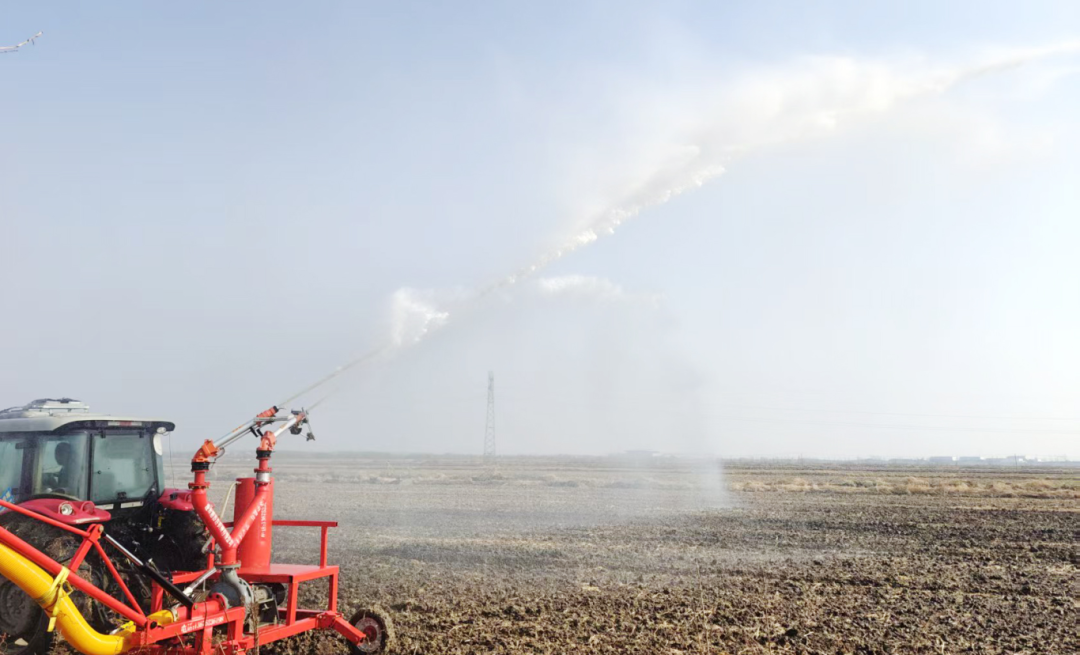 寿西湖农场保义管理区开展稻茬小麦喷灌作业(董云 摄)