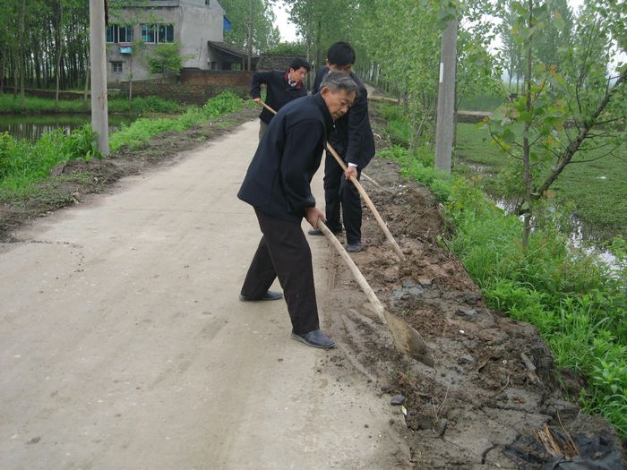 皖河农场为水泥路肩培土保村道畅通