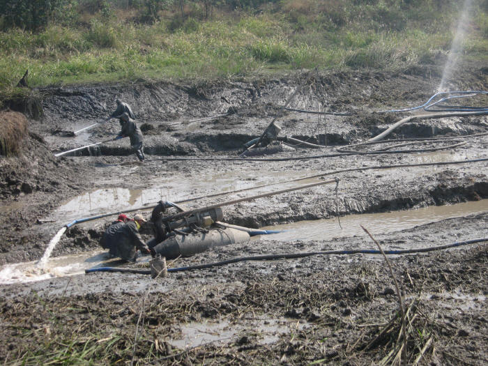 漕河全长14公里,贯穿农场沿江五个农业分场。历史上,漕河是农场农业灌溉的主要来源,也是水上运输通道。后来由于缺乏治理,漕河淤塞严重,失去了原有的功能,沦为野草丛生的沼泽地。集团公司领导曾多次到漕河沿线现场办公,研究治理方案。结合土地复垦整理项目治理漕河成为一项中心工作,整个项目总投资2600万元,项目区七个标段均有漕河治理任务,形成一个系统漕河全流域治理工程。农场在项目实施中,紧扣漕河治理这条主线,精心组织开挖疏浚。截至11月初,已完成漕河开挖土方27.5万方。