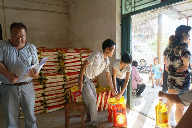临近中秋节前几天,农场党委及工会安排专人采购大米和食用油,重点救助全场650户受灾群众和低保户家庭。到14日下午17时,每户受助家庭都领到了