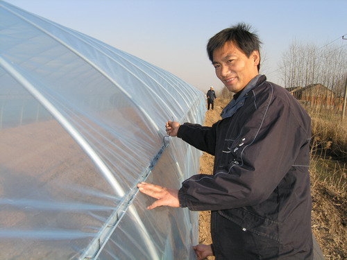 1月30日下午,潘村湖农场一分场职工华晓波正和爱人一道在自家责任田的一头铺设塑料大棚,两个钢架大棚已经基本建成,紧挨着大棚的2间管理房正在进行内部粉刷。