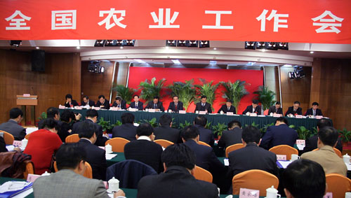 12月22日至23日,全国农业工作会议在北京召开。会议总结了2007年农业农村经济工作,部署了2008年工作。农业部部长孙政才强调,各级农业部门要深入贯彻落实科学发展观,全面落实党的十七大及中央经济工作会议、中央农村工作会议精神,坚持走中国特色农业现代化道路,切实加强农业基础建设,确保农产品有效供给,促进农民持续增收,实现农业农村经济又好又快发展。