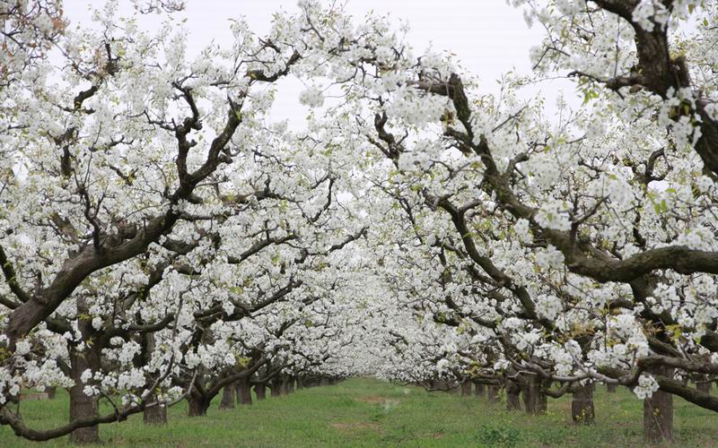 梨花很美,结果硕大,外观黄亮、酥脆多汁、甘甜可口。据权威检测报告,酥梨含有丰富的糖分和人体所需的氨基酸、维生素、矿物质,具有清热解毒、止咳化痰、降温醒酒等功效,被中医界称之为“果中甘露子,药中圣醍醐”,曾被列入贡品达数百年。多年来,砀山果园场持续提品质塑品牌,以绿色、生态、精品为目标,推行“五统一”生产管理,通过实施绿色食品和质量追溯体系建设,把传统“老字号”砀山酥梨打造成为现代特色果品产业,当前正开展梨花授粉等生产管理工作。繁花似锦的果园内,有观赏梨花的八方游客,也有辛苦劳作的授粉职工。
