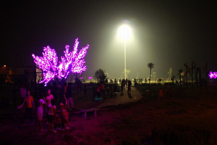 6月6日晚,龙亢农场镇区广场上新安装了高杆灯和六棵桃花树灯,点亮了职工群众夏夜新的生活。巨大的高杆灯矗立在广场中央,灯光如银,银辉倾泻;六棵桃花树灯散布在广场的三个拐角,每两棵相伴相依,灯光妖娆,缱绻缠绵。撩人的景观灯光交融在广场周边的路灯光里,构筑了一副华美的镇区夏夜景观,人们在这美轮美奂的时光和灯光里总能找到属于自己的欢乐:一群女职工们在高杆灯下翩跹起舞,舞动出了和谐华章;老年人在灯光下悠然自得地散步,惬意感受着幸福美满的暮年生活;小朋友们围着桃花树追逐嬉戏,在这个快乐时光里不时发出天真无邪的笑声……