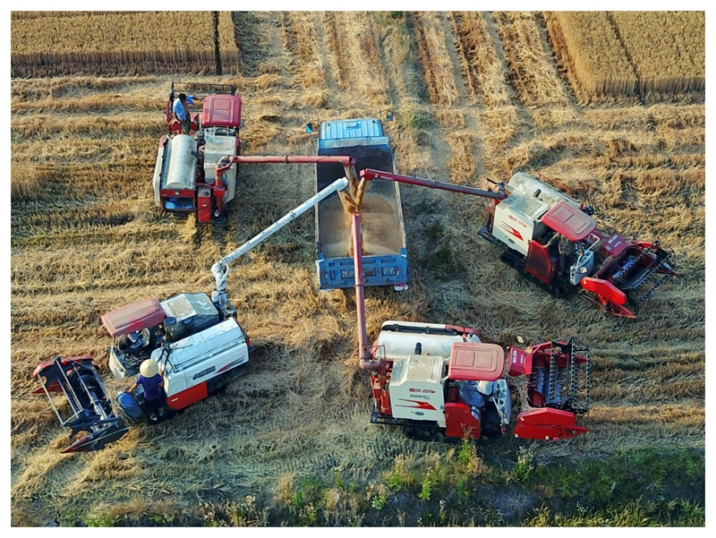 6月4日,农垦寿西湖农场5.47万亩小麦收割进入高峰期,当天有近百台收割机在金色的麦田里来往穿梭,机器轰鸣,麦浪翻滚,一派喜人的丰收景象。今年开云手机在线登录入口夏粮再获丰收,基本实现优质专用小麦种植面积和“单种、单收、单储、专用”两个100%全覆盖的预期目标。
