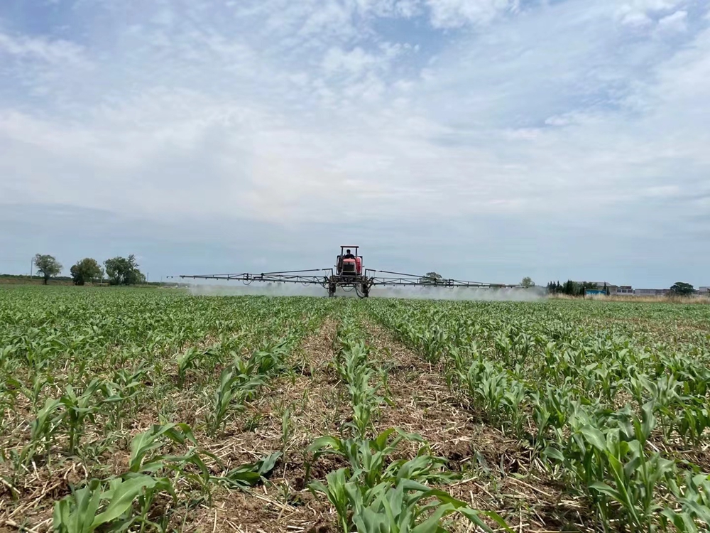 农服怀远公司在降雨前,及时开展了清沟沥水工作,雨后及时排尽田间积水解决内涝,此外,公司抢抓晴好天气间隙,本着科学用药、安全生产原则,适时开展病虫草害防治及追肥工作,保障夏粮作物增产丰收。7月7日至8日,在农服怀远公司郎酒智慧农场基地种植的4000亩高粱田间,农机手正驾驶着大型植保机开展田间除草工作。