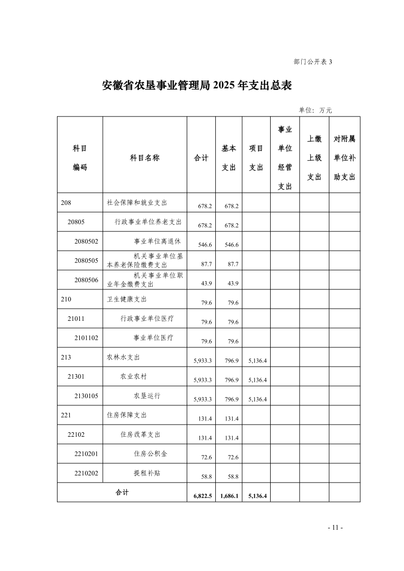 安徽省农垦事业管理局2025年度项目支出绩效目标