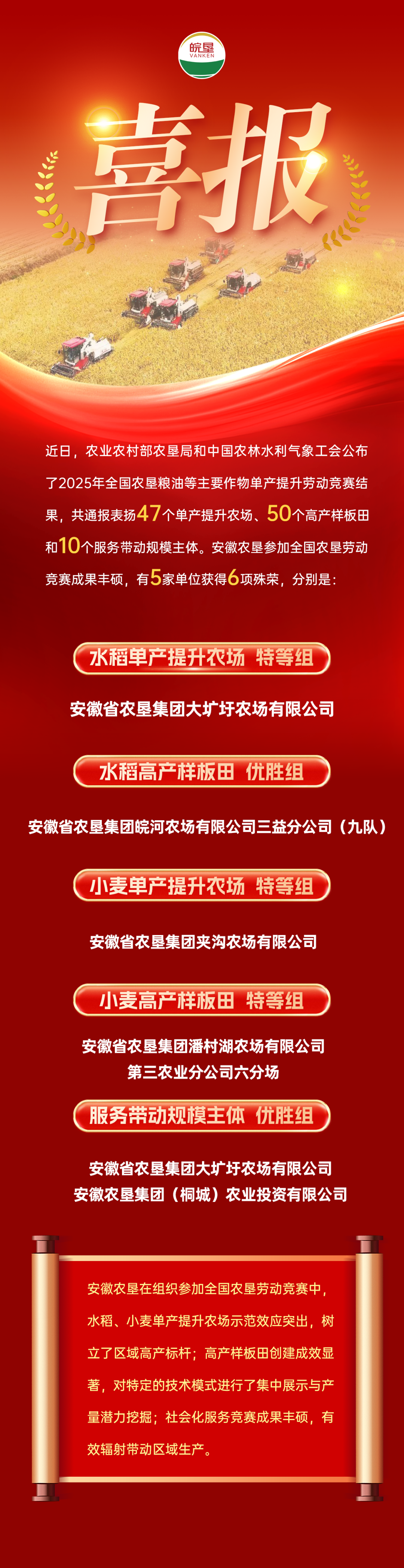 喜报丨开云手机在线登录入口这5家单位获全国农垦粮油单产竞赛6项殊荣