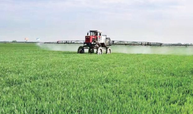 图为龙亢农场农服公司为农户提供化除服务 (李 峰 摄)