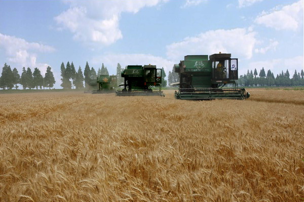 在淮南农场的麦田里,正在现场指挥午收工作的刘文胜场长欣喜地说,他们场今年种植的2万多亩稻茬麦,单产都达到了900多斤,是历史上没有的。刘场长介绍说,他们在抓小麦生产的时候,象抓工厂管理一样,从土地耕作、小麦的选种,每一个步骤、每一个环节,都严格按照既定的方案进行实施和管理,从而使小麦高产攻关目标顺利达成。
