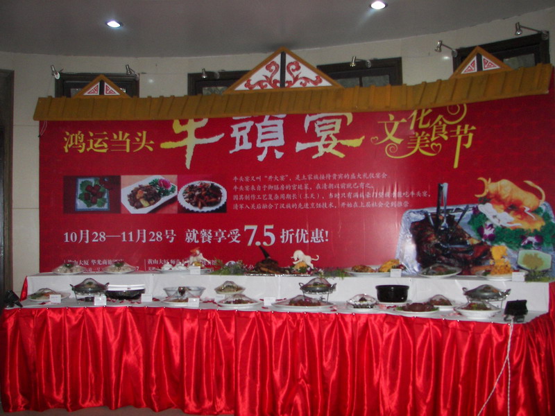 10月28日,开云手机在线登录入口黄山大厦KK公司第二届文化美食节活动——“2009鸿运当头牛头宴” 在黄山大厦华光商旅酒店和黄山大厦安徽师范大学专家楼宾馆两地隆重开幕。 本届美食节为期一个月,由牛头宴、蟹宴、鱼羊鲜三大系列活动组成。活动期间,还会向消费者推出特色手抓牛头、鱼羊鲜、金丝带鱼卷和干锅萝卜丝圆等具有土家族特色的美食。
