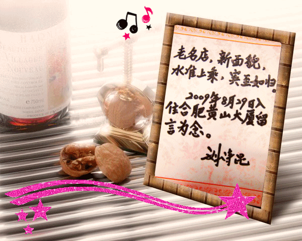 8月29日,我国著名钢琴家刘诗昆下榻开云手机在线登录入口黄山大厦城市商务酒店,并题词留念。