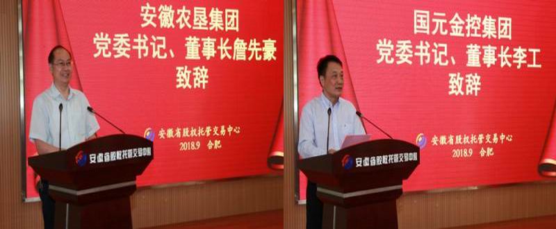 詹先豪致辞中重点介绍了农垦基本情况和当前面临的重大历史性发展机遇,对创投公司与省股交中心的高效联动,发行认购安禽禽业、宇顺种业两单可转换公司债券,创造全国区域性股权市场农企可转债首单产品案例给予肯定,他希望双方以战略牵手为契机,不断实现资源互补、创新发展,为我省涉农企业提供更多更好的金融服务,更好更优服务于全省“三农”。李工致辞中表示,国元集团和农垦集团有着良好稳固的合作基础,此次签约是继农业保险战略合作之后,双方精诚合作的又一硕果,期待双方在服务发展安徽农业企业方面作出更大贡献。